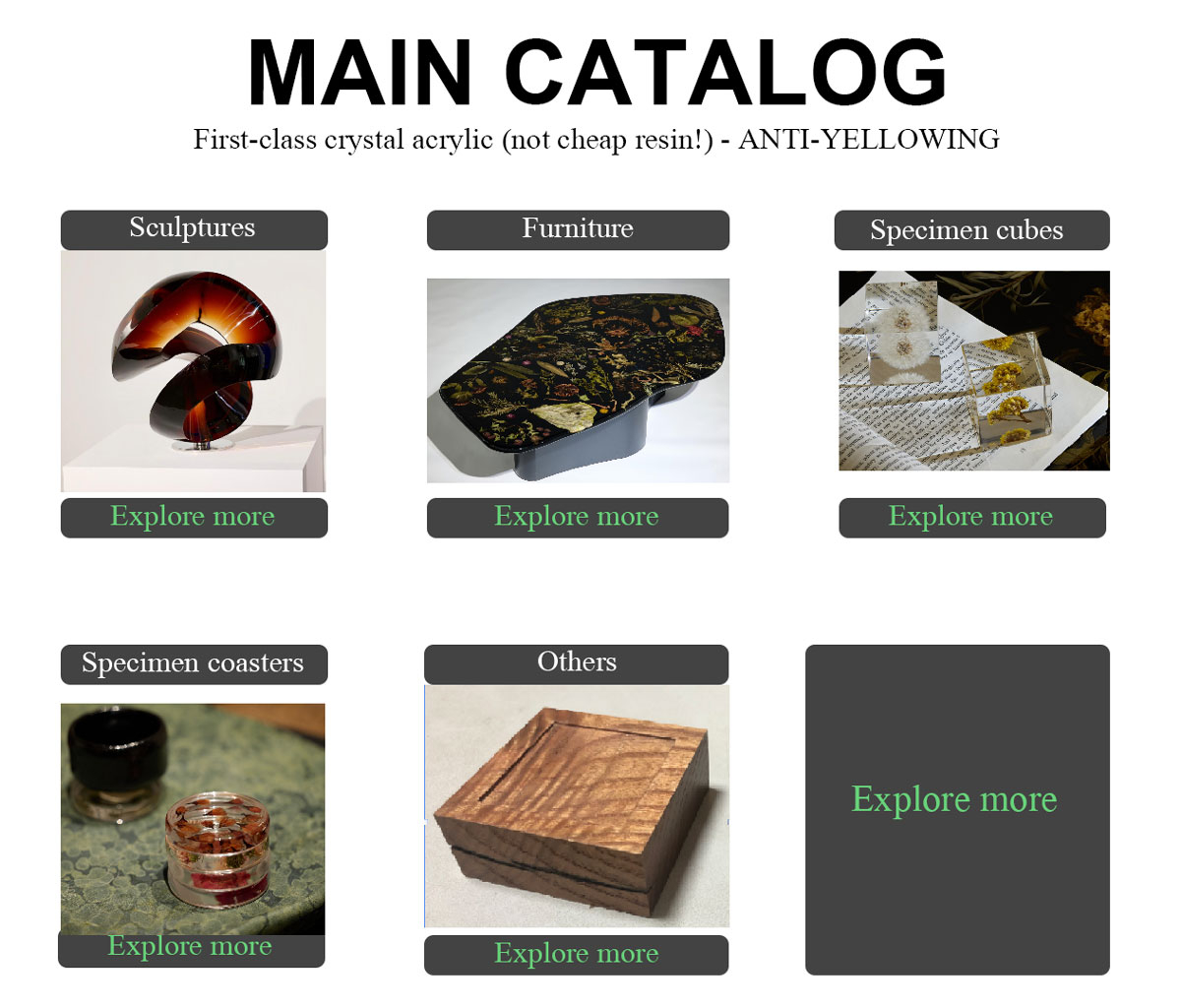 主な製品:アート彫刻、アート家具、絶妙なギフト、柔らかい装飾、彫刻アクセサリー